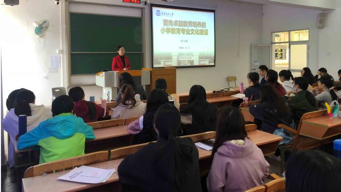 此次讲座曾文婕教授将目光聚焦于小学教育专业学习文化建设,从“理想、投入、自主”三大基本理念出发展示了华南师大小学教育专业学生的学习氛围,为我院师生提供了宝贵的学习经验。通过聆听讲座,小学教育专业学生深刻领悟到,作为未来的小学教师,应当在行动中学习,夯实基础,不断进行自我发展,为实现卓越教师的目标而奋斗!