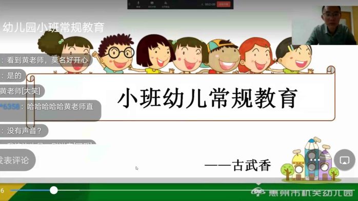 12月13日晚上,教育科学学院在钉钉群为本院师生、毕业校友举办了名师进校园系列讲座。讲座以 “幼儿园小班常规教育”为主题,主讲人是惠州市机关幼儿园副高级教师,从事幼教工作长达22年的古武香老师。本次活动由教务处主办,教育科学学院承办,由学前教育系的黄国庭主任主持。