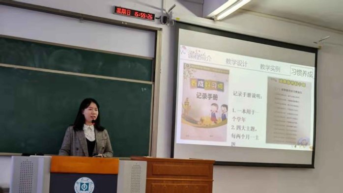 王昕老师在讲座中主要围绕小学《道德与法治》课程实施和小学生行为习惯培养两个维度展开。为帮助大家整体把握小学阶段的《道德与法治》,王老师首先介绍了该课程的理论基础和基本框架,并以三年级上册第一单元第一课“学习伴我成长”为例,详细阐述小学《道德与法治》课程与其他课程在教学设计方面的差异。随后,又呈现了深圳市说课比赛现场实录,优质课例的导入环节、学生活动环节、教师总结环节等现场实录。在小学生行为习惯培养方面,王老师以《壆岗小学好习惯指引》为例,分享如何基于主题板块逐步帮助小学生养成好习惯。