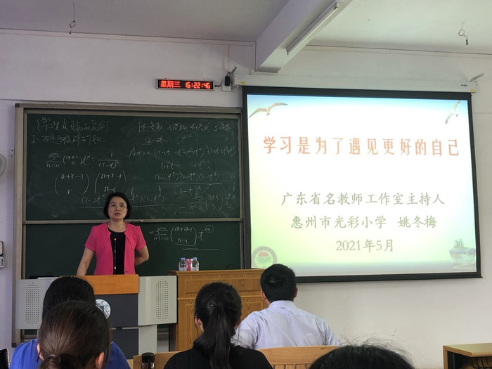5月12日下午,惠州市光彩小学正高级教师姚冬梅副校长受教育科学学院邀请来校中小学名师进校园暨我院行知论坛讲学。教育科学学院20级小学教育专业学生,惠州学院--华南师范大学联培研究生以及部分小学教育专业教师聆听了讲座。讲座由教育科学学院王贤文博士主持。
