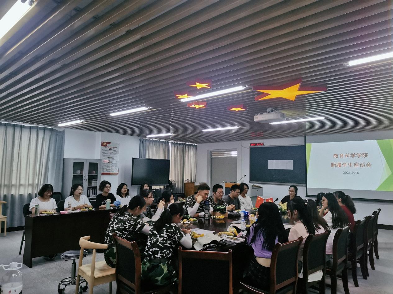 9月16日下午,教育科学学院在旭日大楼621会议室举办新疆籍学生座谈会,学院副书记刘华、辅导员张磊、教务员刘锦花,学院新疆籍学生参加了座谈会。