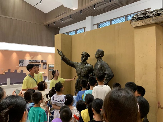 7月20日上午,活动在简单的开营仪式下拉开了序幕。义教队员们组织小朋友进行简单的自我介绍与热身游戏后,以讲故事的方式,向孩子们科普了东深供水工程,让孩子们深入了解惠州东江的同时,加强了他们对惠州东江文化的认同感与自豪感。随后义教队员们带领孩子们参观邓演达纪念馆和党史馆,向他们讲述邓演达的历史事迹及对革命做出的贡献,在红色文化学习中培养孩子们的爱国意识。上午的义教活动在暑假学习辅导中结束。