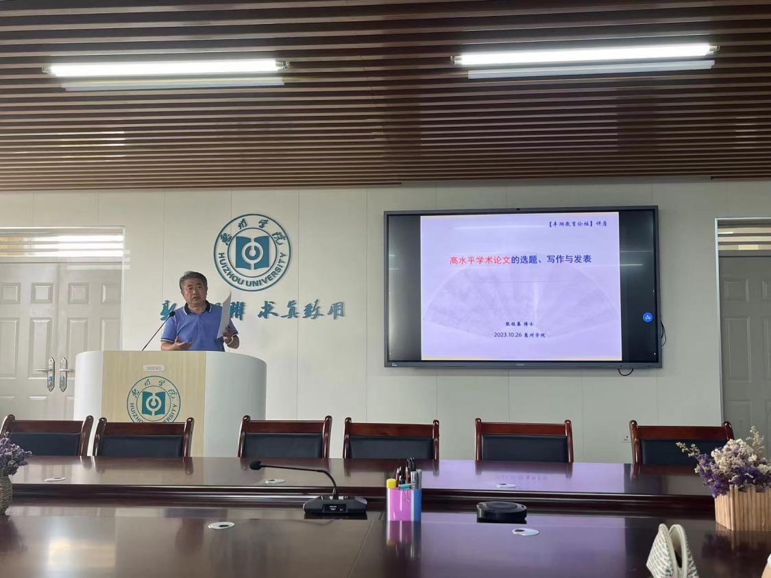 为提高教师,特别是青年教师学术论文写作水平,推动教育学重点学科高质量发展,10月26日上午,教育科学学院在旭日教学楼621会议室举办了“丰湖教育论坛”讲座。惠州学院特聘教授、博士生导师张桂春教授为教育科学学院全体专任教师作了《高水平学术论文的选题、写作与发表》主题讲座。