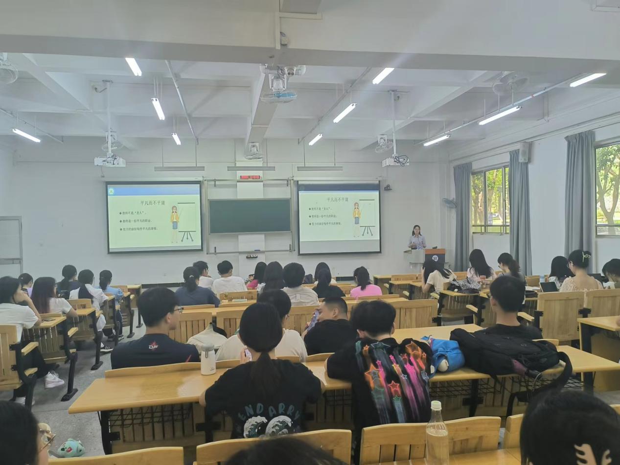 2023年11月9日上午10点,惠州市德威学校副校长李紫婷老师在旭日楼118课室为教育科学学院21小学教育专业全体同学作了一场题为“怀揣空杯,走向专业成长”的专题讲座。小学教育专业21级全体同学参加了讲座。讲座由教育科学学院小学教育系主任金艳主持。