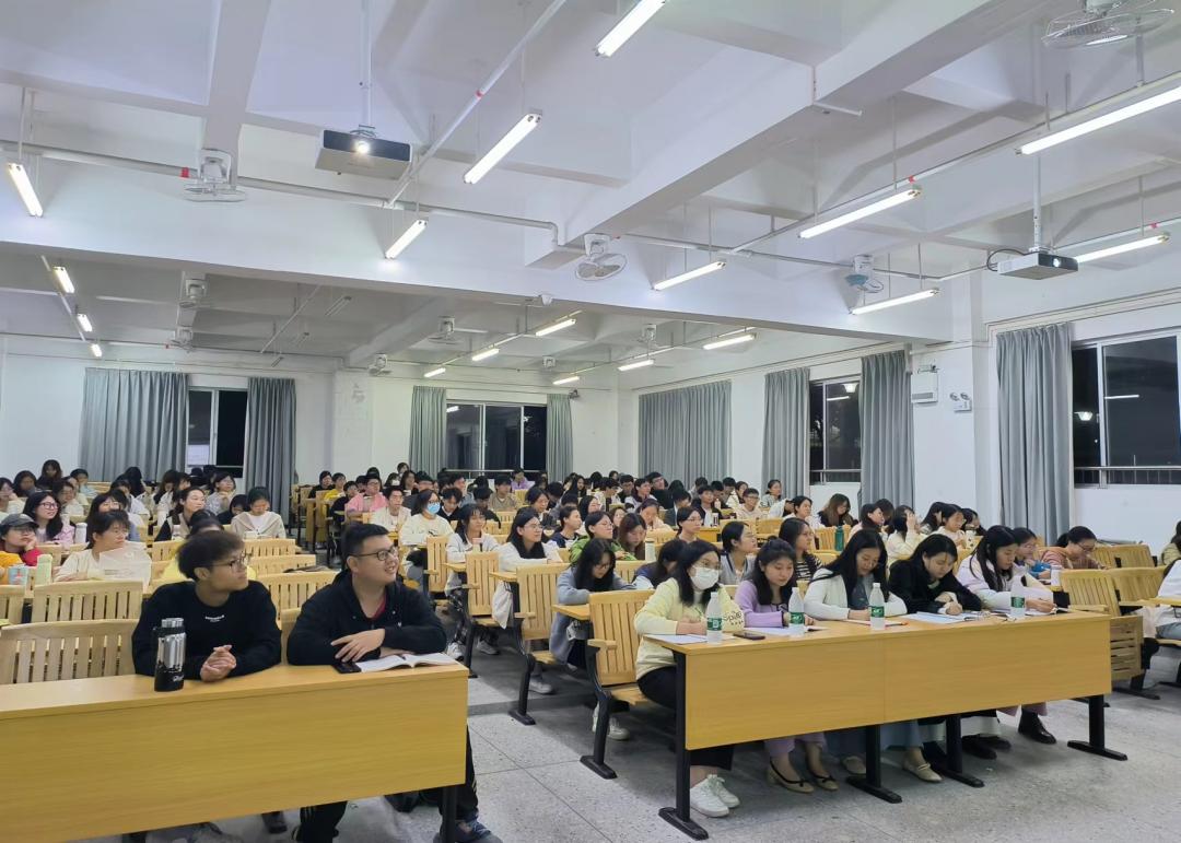 2023年12月5日晚,惠州市优秀教育科研工作者、惠州市优秀班主任、惠州市第二小学校长梁小敏在旭日楼107教室开展了“基于新课标的小学语文教学设计与实施”专题讲座。讲座由小学教育系主任金艳主持,惠州市第二小学5位青年老师和2022级小学教育专业全体同学参加了讲座。