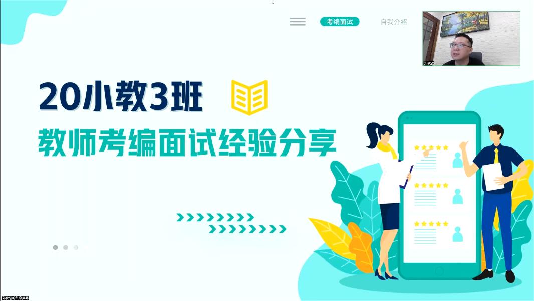 4月22日晚,20级小教3班教师考编面试经验分享会于线上腾讯会议平台顺利举行。分享会邀请了20级小教3班成功考取教师编制的8位同学进行了教师考编面试经验分享。共有来自20级小教3班、21级小教3班的近70名同学参与了分享会。本次分享会由20级小教3班班主任郑秋强主持。