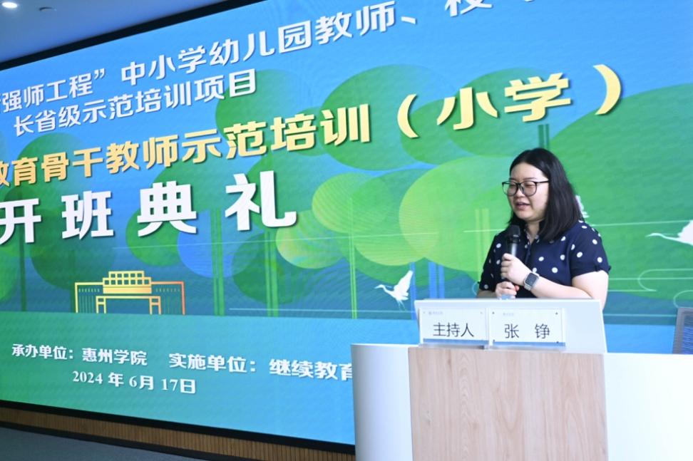 2024617日上午,由广东省教育厅主办,惠州学院承办的“新强师工程”中小学幼儿园教师、校(园)长省级示范培训项目中小学劳动教育骨干教师示范培训(小学)惠州学院旭日科技大楼A13楼智慧教室1304正式开班。royal皇家88平台副院长金艳副教授、小学教育系主任张铮老师、副主任卢萌老师以及来自全省的学员们出席了开班仪式。仪式由royal皇家88平台张铮老师主持。