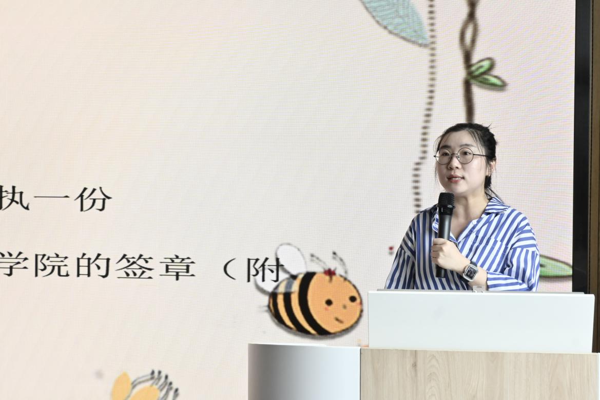 会议的第四项议程,由张越老师讲解实习材料填写的相关事宜。张越老师为同学们讲解了实习手册和实习鉴定表填写时的注意事项,还提到要与指导教师保持密切的沟通与交流,及时上报实习情况。