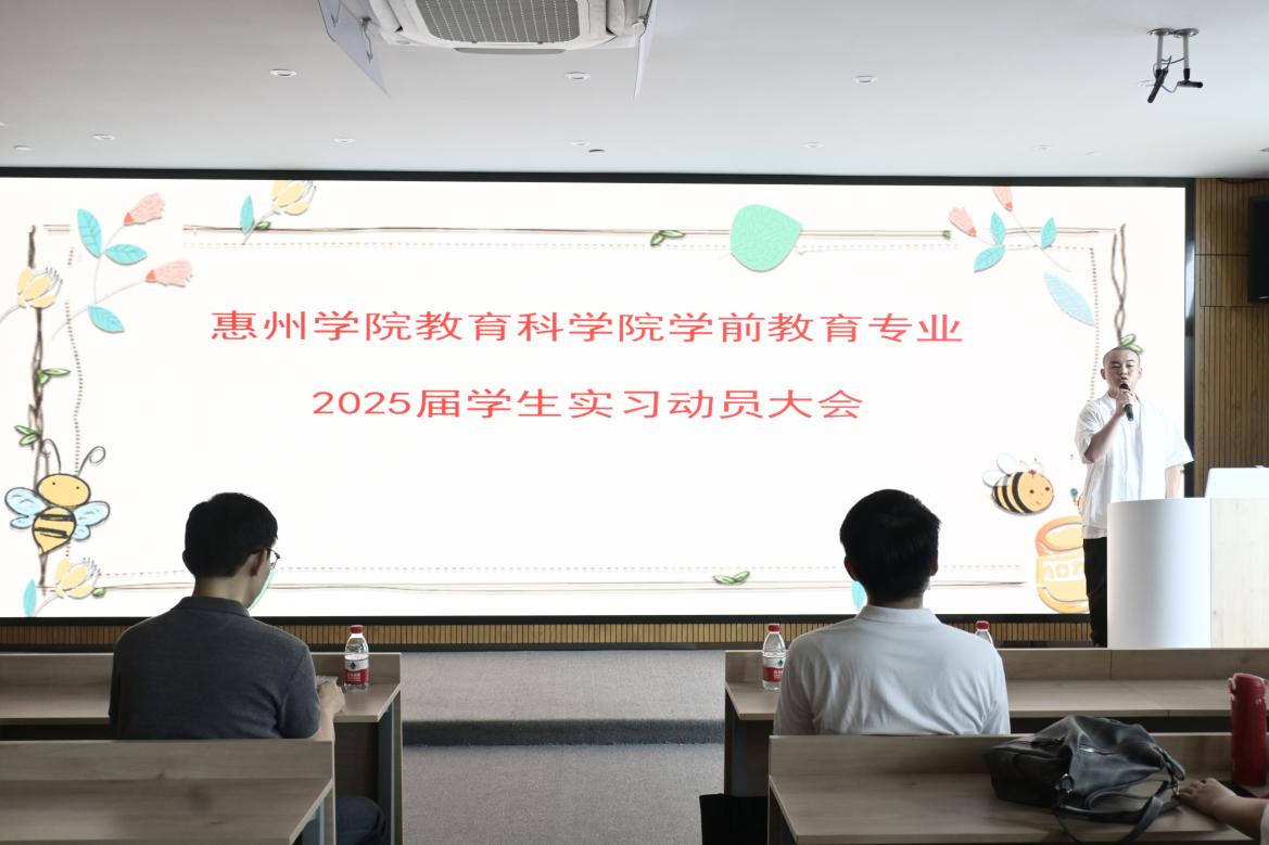 为顺利推进毕业班学生实习工作的开展,激发同学们的实践热情,强化学生安全意识和责任意识,明确实习目的,提高实习效果,为即将开始的实习活动做好充分的准备。royal皇家88平台于2024年7月2日上午在科技楼13楼远程互动教室举行2025届学前教育专业实习动员大会。谢桂新副院长、2021级学前教育专业实习指导教师及全体学生参与本次大会。本次实习动员大会由21级学前教育一班李德恩同学主持。