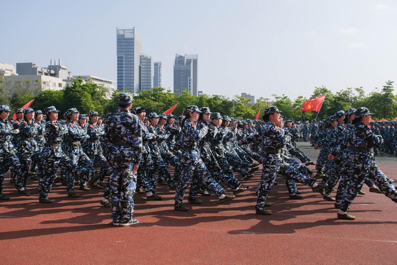 在结营仪式上,教育科学学院十七连方队迈着矫健有力的步伐,通过主席台接受检阅。他们身姿挺拔,步伐整齐划一,口号声响彻云霄,展现出了高度的纪律性和团队协作精神。我院新生们目光坚定,神情专注,每一步都充满力量,每一个动作都标准规范,彰显了教科院新一代学生的青春风采和蓬勃朝气。