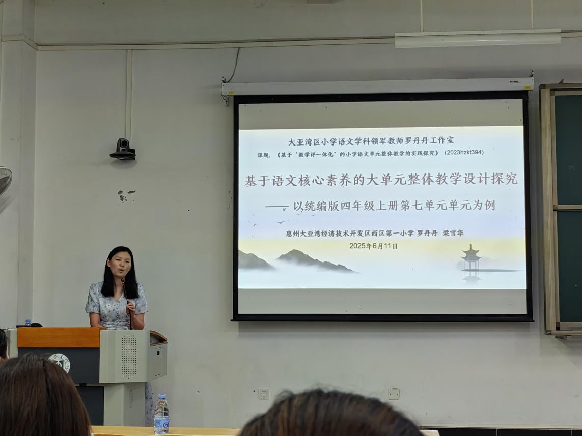 2025年6月11日晚上,大亚湾区小学语文学科领军教师罗丹丹工作室应邀在我校旭日大楼107教室开展了小学语文大单元教学设计与实施的专题教学。小学教育专业常攀攀老师主持了此次讲座,2023级小学教育专业全体学生参加了此次讲座。