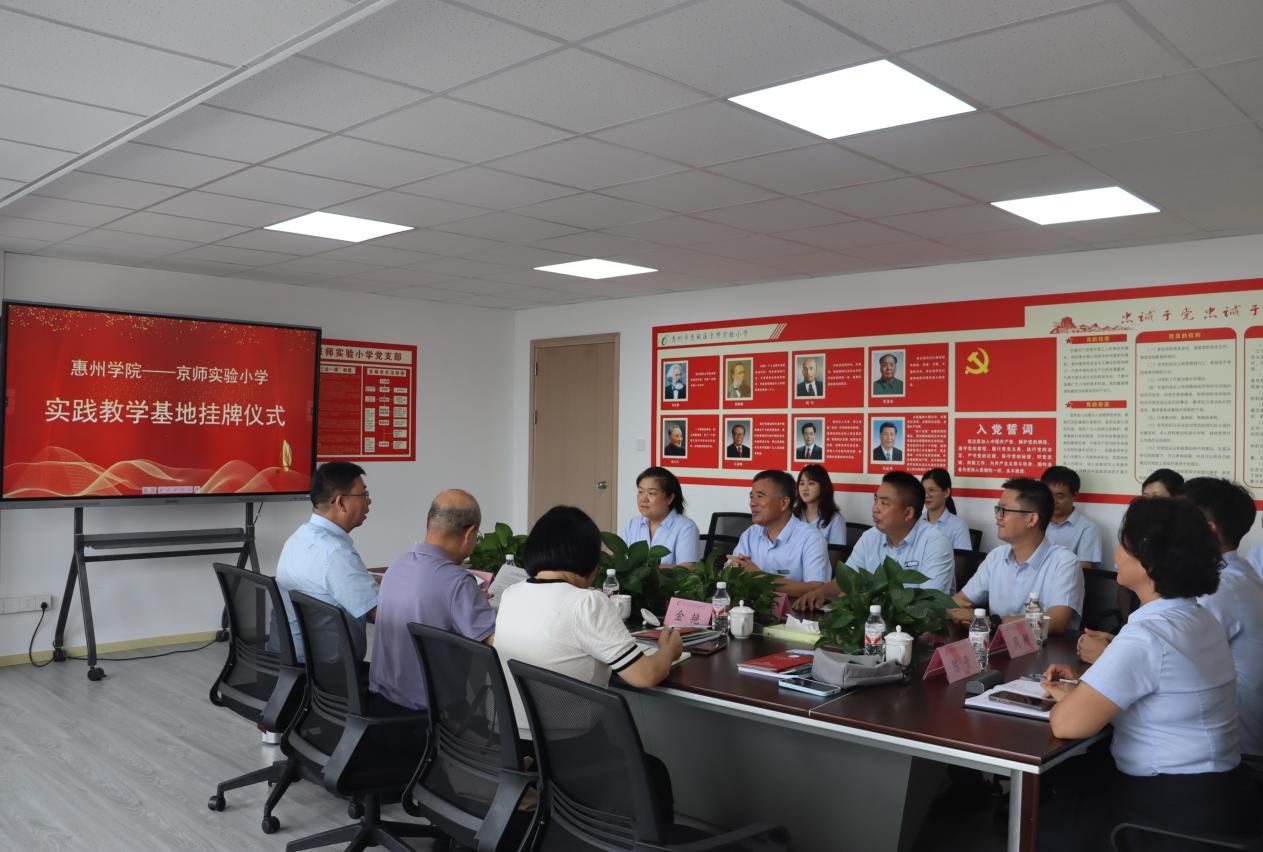 仪式现场,惠州学院领导与京师实验小学负责人共同为实践基地揭牌。随后,双方就合作细节进行了深入交流,初步达成了包括见习、实习、跟岗实践和教师培训等多项合作意向。